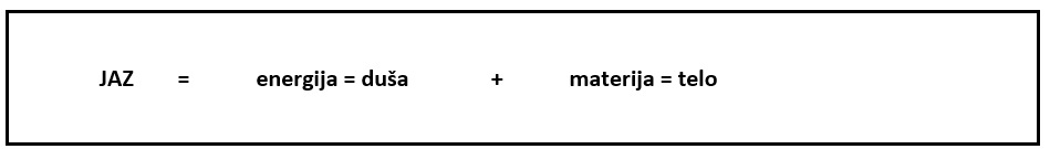 Vsak JAZ je energija in materija. Duša je energijski del našega JAZ-a, telo pa snovni del našega JAZ-a. Torej: